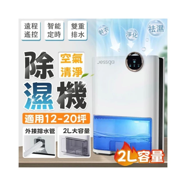 Jessga H3清淨除濕機 雙排水/濕度顯示/遠程遙控/冷凝式除濕 除濕機 除濕 家用除濕機 空氣清淨機空氣清淨除濕機