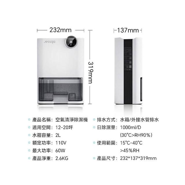Jessga H3清淨除濕機 雙排水/濕度顯示/遠程遙控/冷凝式除濕 除濕機 除濕 家用除濕機 空氣清淨機空氣清淨除濕機