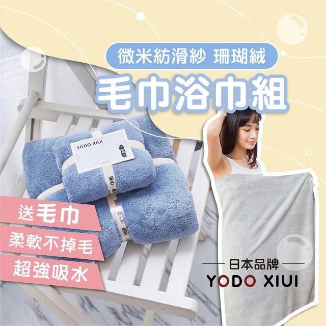 YODO XIUI【超細纖維】 珊瑚絨毛巾浴巾組 寶寶浴巾 兒童浴巾 浴巾 毛巾 浴巾+毛巾2件組 柔軟吸水不掉毛