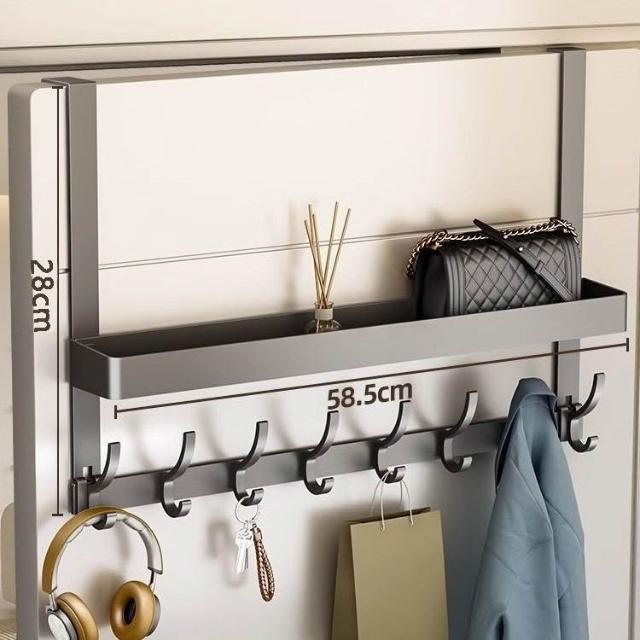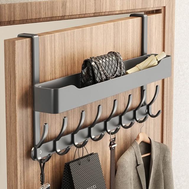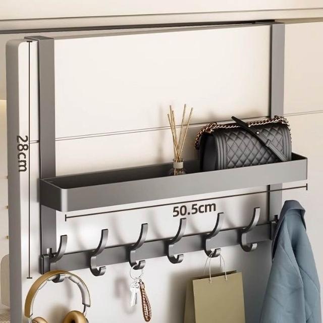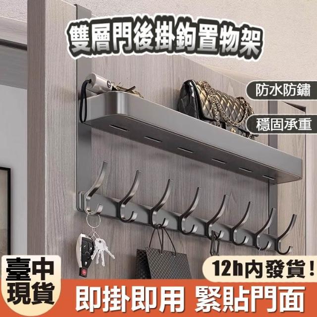臺中現貨 12h內發貨 隔日達 可到貨付款🔥 門後雙層掛衣架 免打孔門後掛鉤 門背式衣帽架 臥室入戶門掛衣架 門後收納