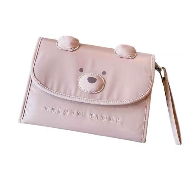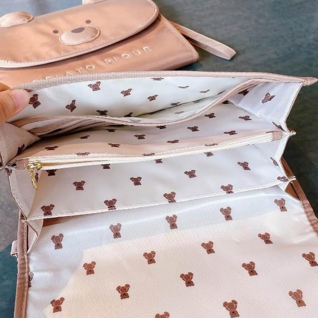 望星願出口日本小熊多分層媽媽/寶寶手冊/寶寶手冊收納本可愛小熊母子手賬包疫苗齣生證明病例收納包