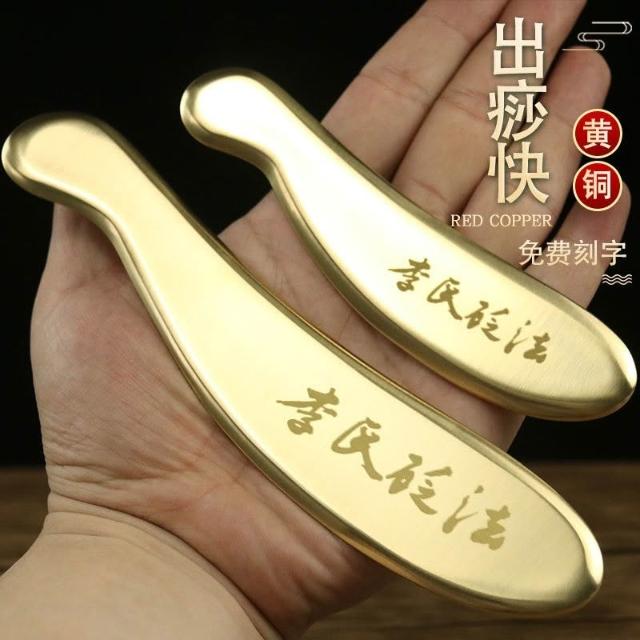 望星願黃銅經絡板 刮痧神器 虎符銅砭刮痧片 純銅刮痧板 擀筋棒 肩頸背部黃銅砭全身通用按摩颳痧刀