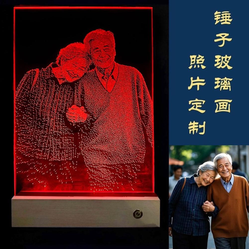 望星願客製彩色錘子畫 純手工 送女友情侶七夕情人節工藝畫七琉璃敲擊畫 紀念日DIY高端禮品送家人同事長輩來圖訂製專屬玻璃畫擺件