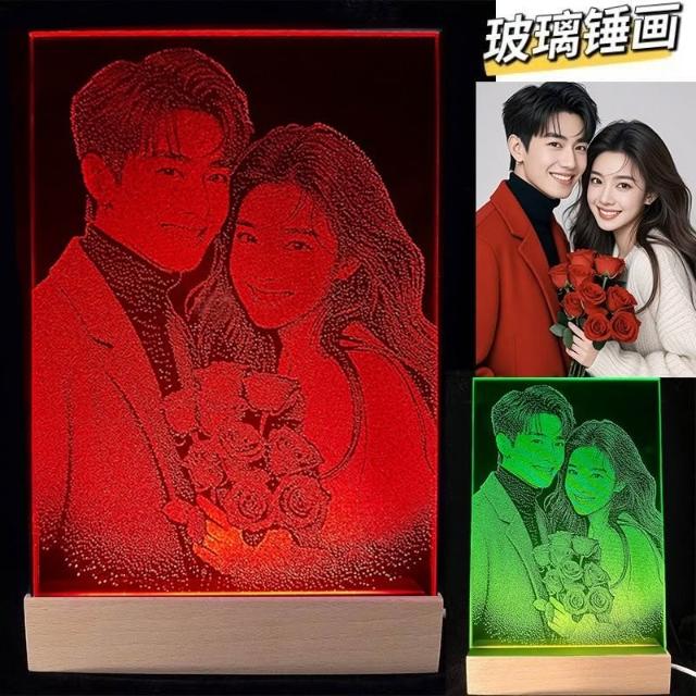 望星願客製彩色錘子畫 純手工 送女友情侶七夕情人節工藝畫七琉璃敲擊畫 紀念日DIY高端禮品送家人同事長輩來圖訂製專屬玻璃畫擺件