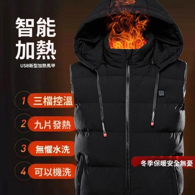 望星願電熱馬甲 日本冬季熱銷智能加熱背心USB充電加熱羽絨馬甲電熱背心男女電暖衣服保暖馬夾前後保暖可水洗連帽馬夾中老年保暖背心