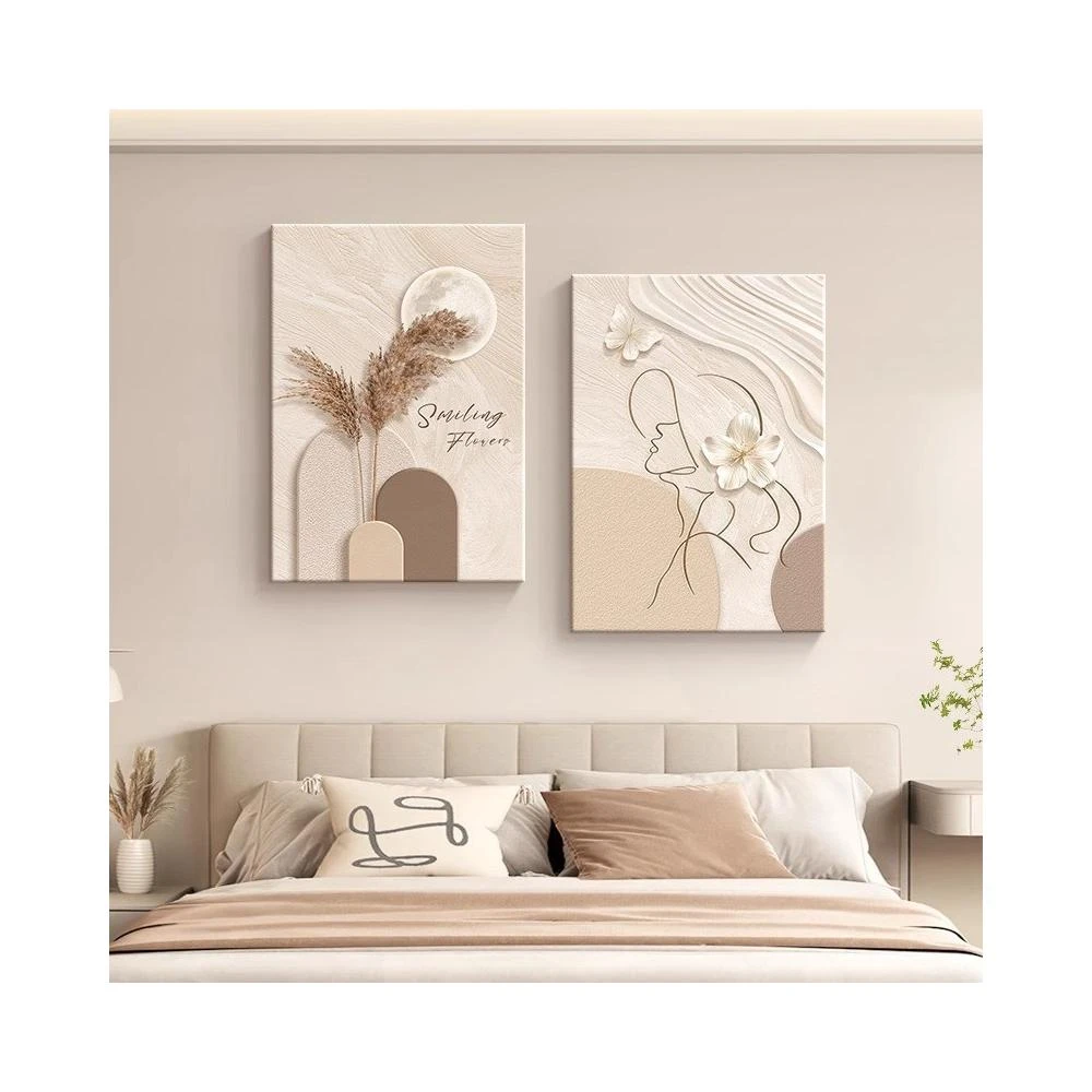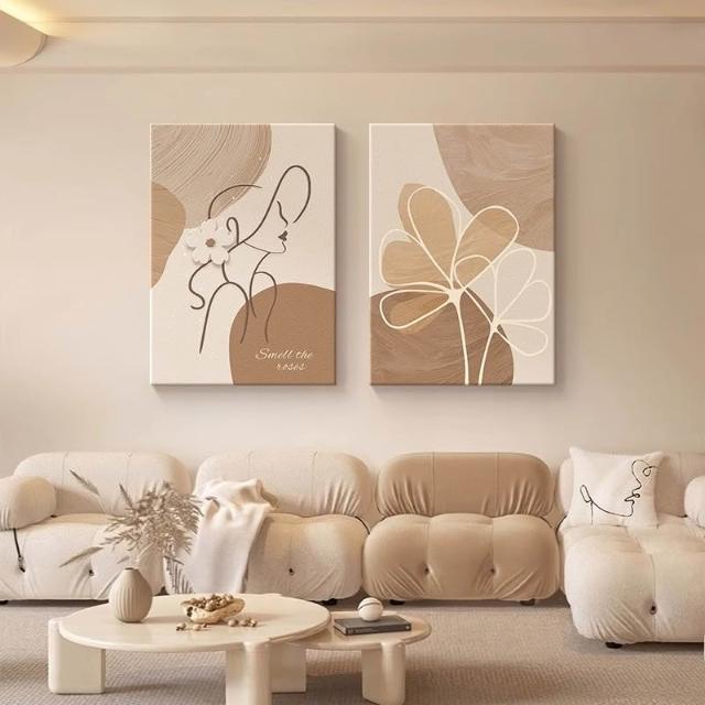望星願北歐裝飾畫 奶油原木風 抽象線條 人物 ins 居家裝飾 客廳掛畫 房間裝飾 網美佈置 壁貼 壁畫 無框畫
