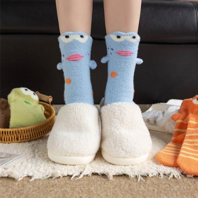 望星願💛比奇堡居民搞怪中筒襪 醜萌襪子 搞怪醜萌襪子 可愛醜萌襪子 毛絨搞怪襪子 秋冬加厚毛絨襪 珊瑚絨長襪 中筒襪