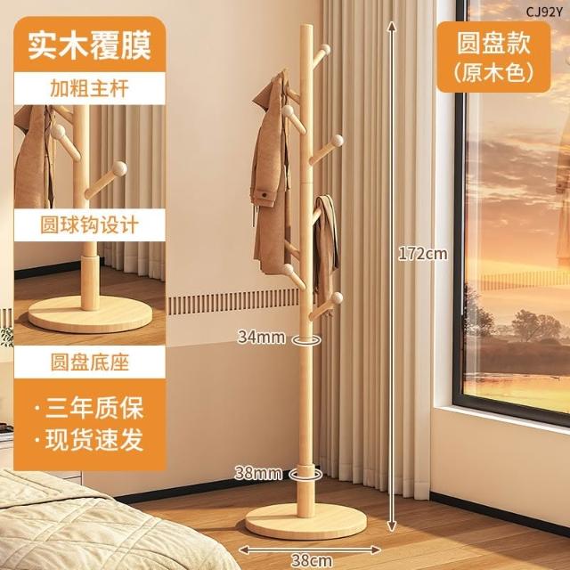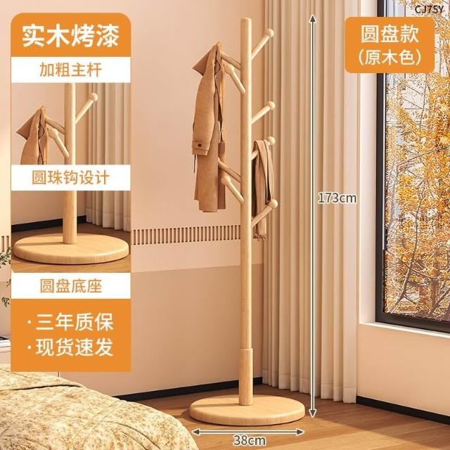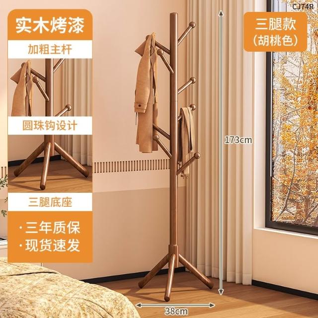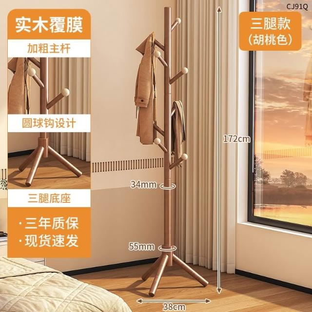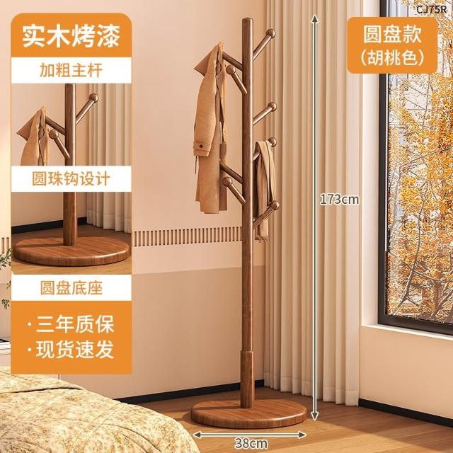 望星願實木落地衣帽架 掛衣架 臥室家用立式衣架 落地衣帽架臥室家用掛衣架簡易立式櫸木大學生宿捨掛包架