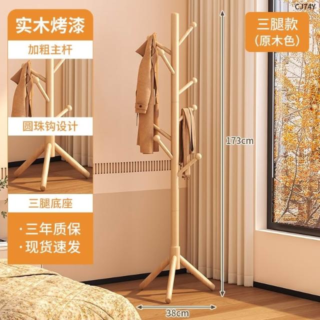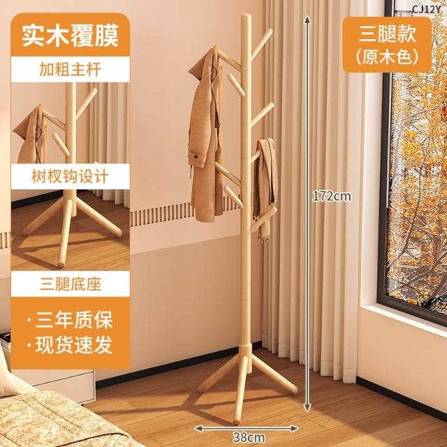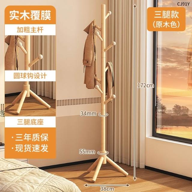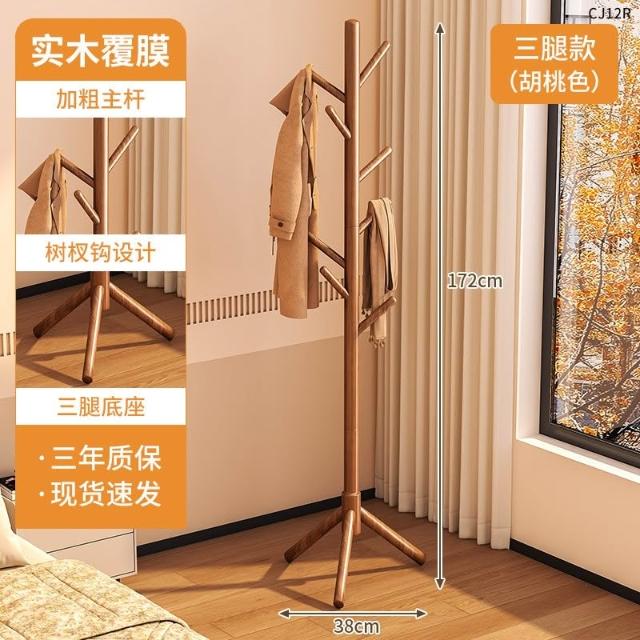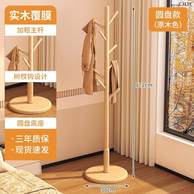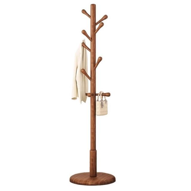 望星願實木落地衣帽架 掛衣架 臥室家用立式衣架 落地衣帽架臥室家用掛衣架簡易立式櫸木大學生宿捨掛包架