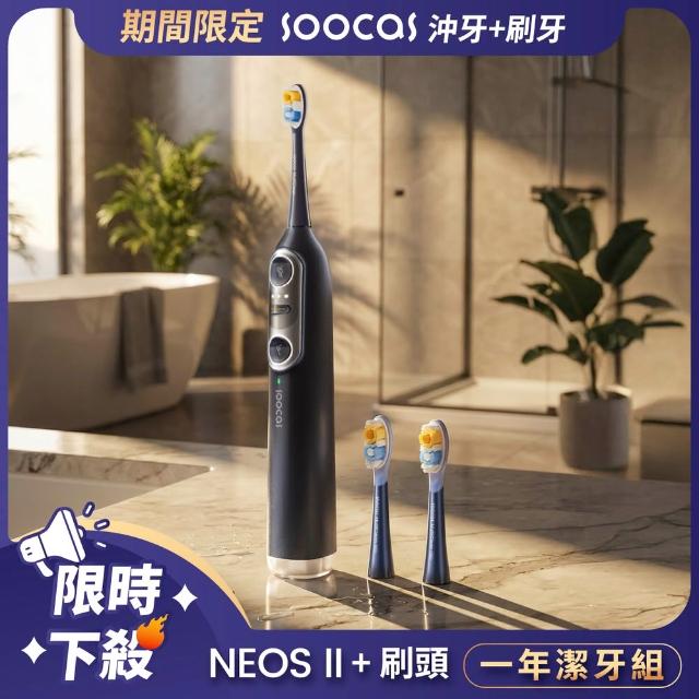 Soocas 素士NEOS II 全效沖牙音波電動牙刷 一年潔牙組-星空藍【送齒縫清潔組】