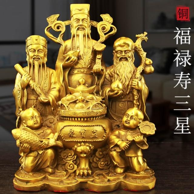 客廳擺件黃銅福祿壽三星像拱照純聚寶盆財神家居店鋪裝飾開業禮品