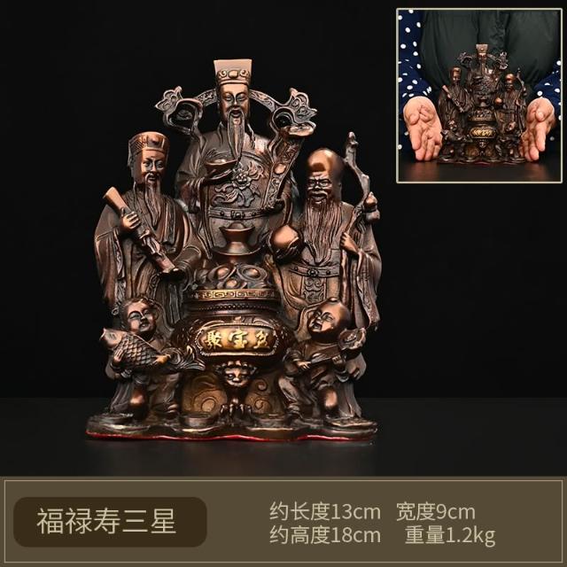 客廳擺件黃銅福祿壽三星像拱照純聚寶盆財神家居店鋪裝飾開業禮品