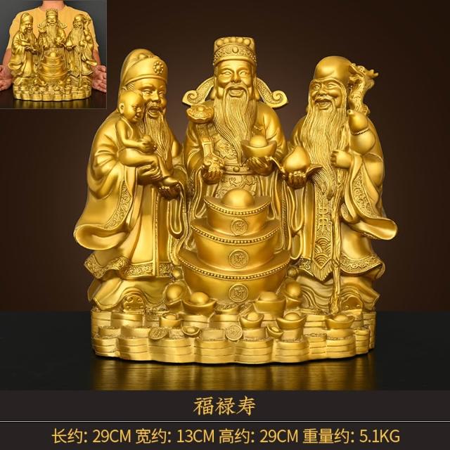 客廳擺件黃銅福祿壽三星像拱照純聚寶盆財神家居店鋪裝飾開業禮品