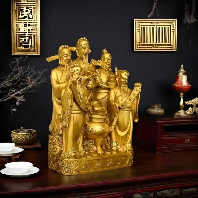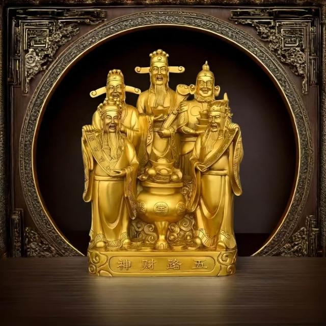 五路財神爺擺件招財金蟾聚寶盆家用供奉神像客廳店鋪喬遷開業禮