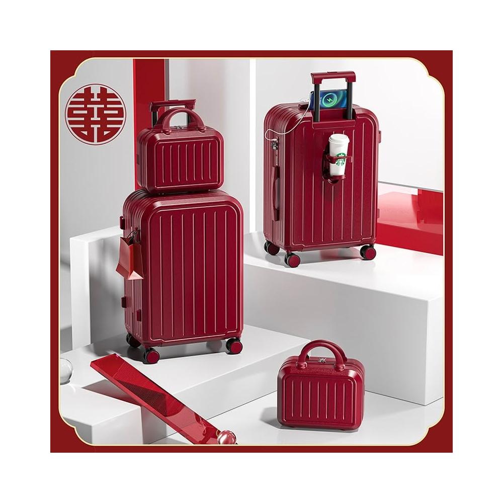 結婚行李箱陪嫁箱紅色旅行箱新娘拉杆箱女壓婚禮用密碼嫁妝箱一對