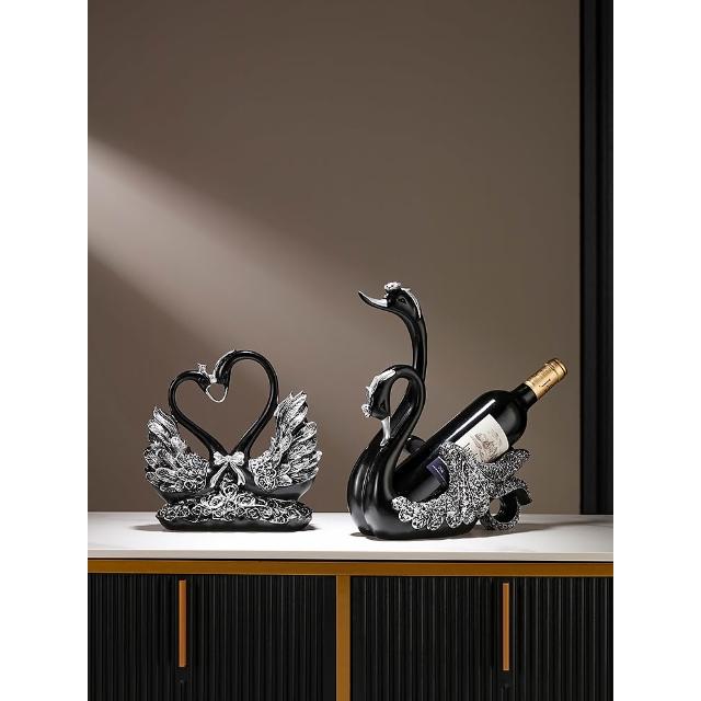 創意輕奢高檔紅酒架黑天鵝擺件高端餐桌邊酒櫃擺紅酒瓶架子裝飾品