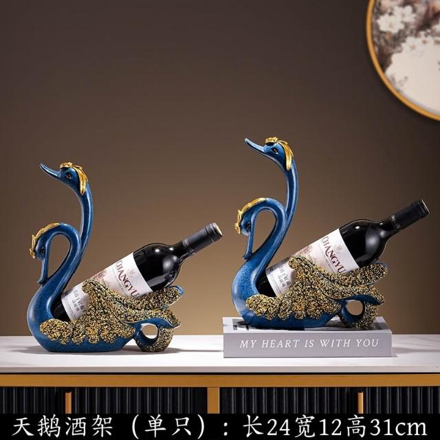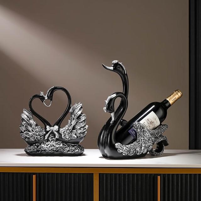 創意輕奢高檔紅酒架黑天鵝擺件高端餐桌邊酒櫃擺紅酒瓶架子裝飾品
