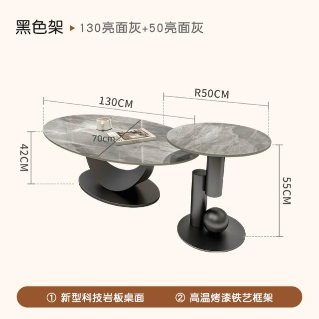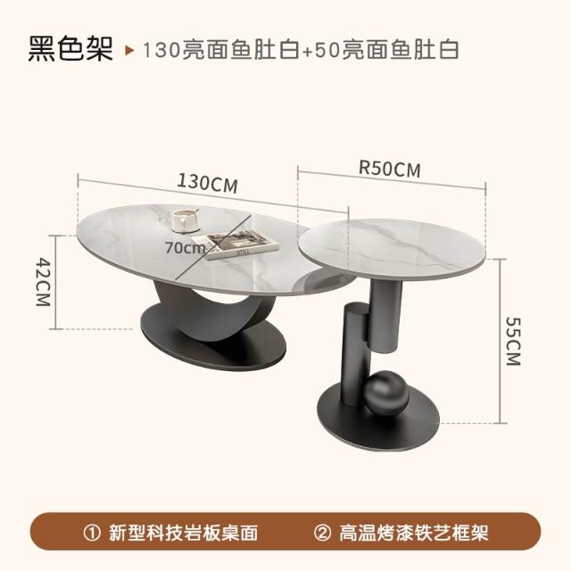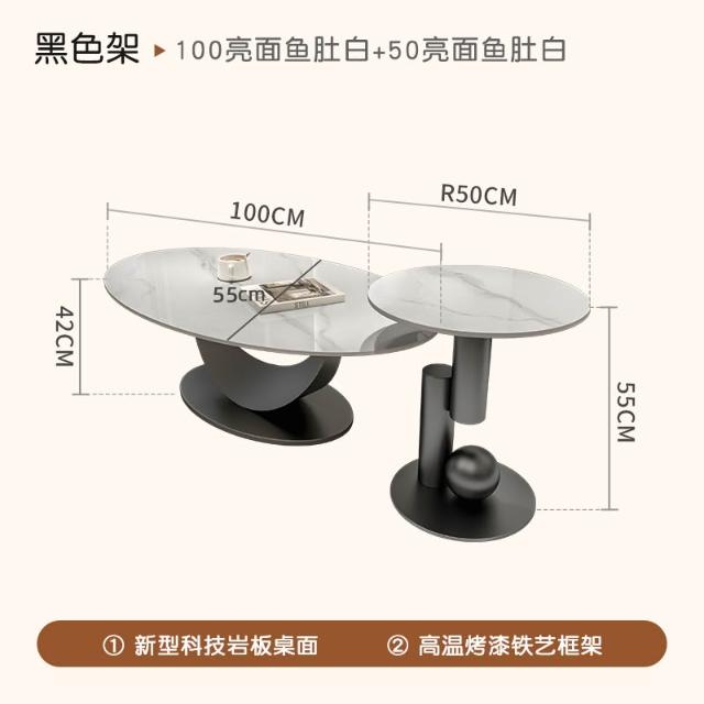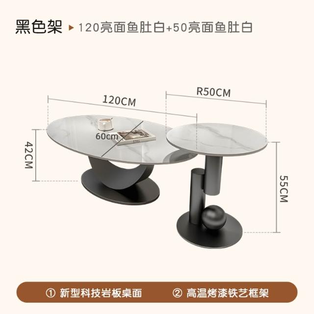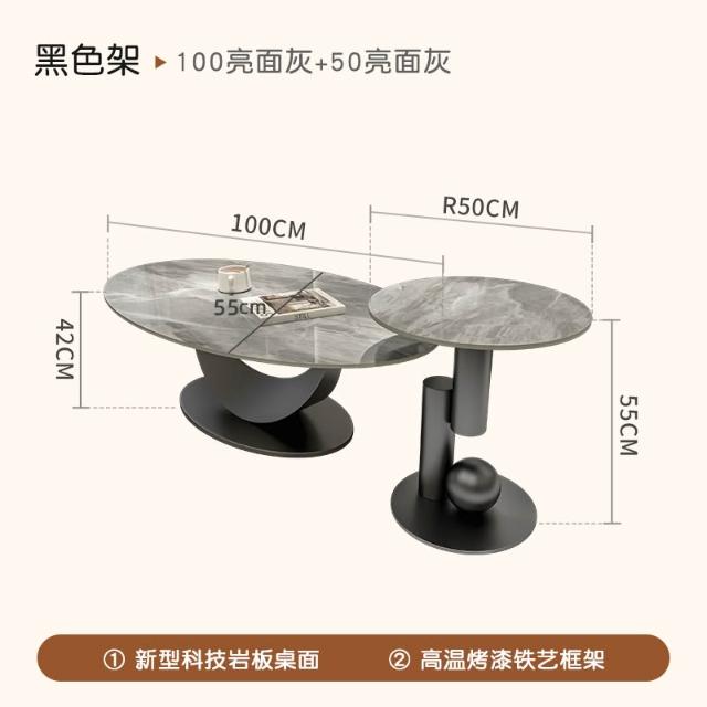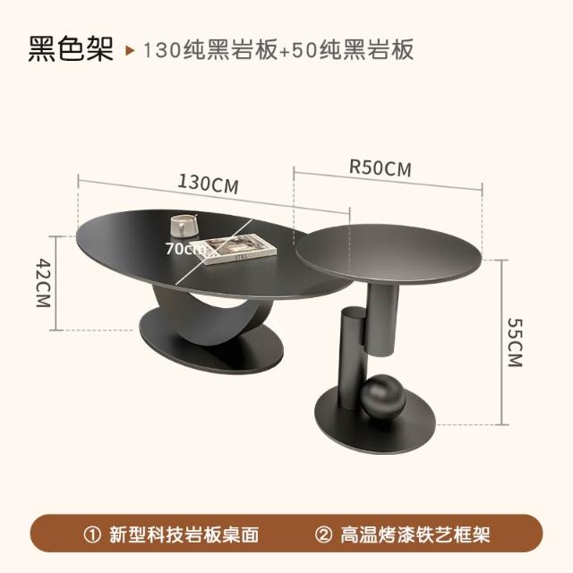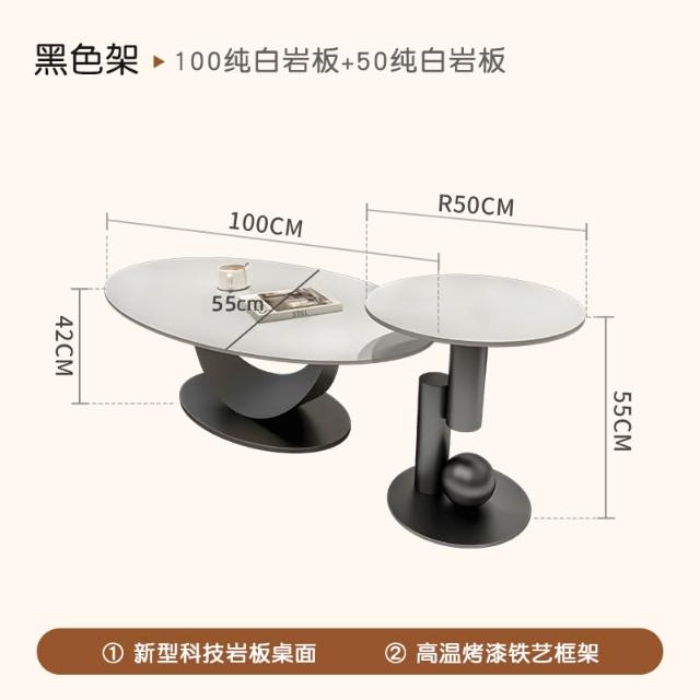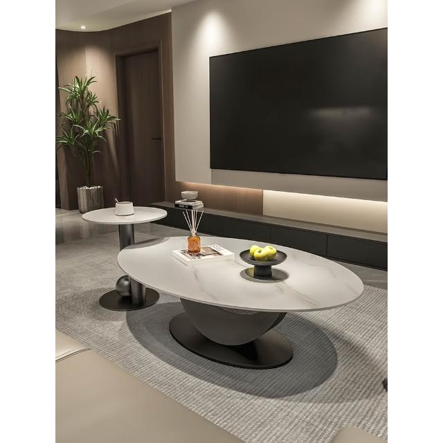 設計師極簡岩板茶几桌子橢圓形客廳家用現代簡約小戶型輕奢高級感