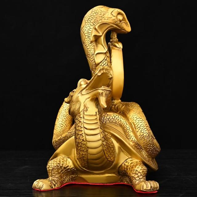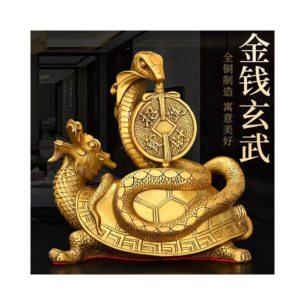 黃銅龍龜擺件玄武神獸招財進寶裝飾品銅龜蛇四方神獸家居客廳擺件