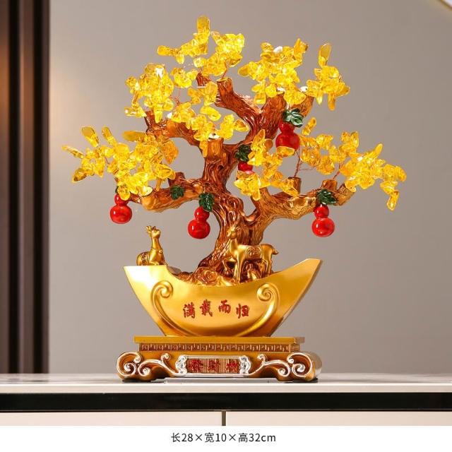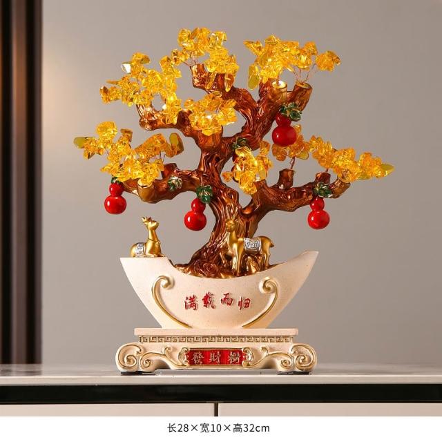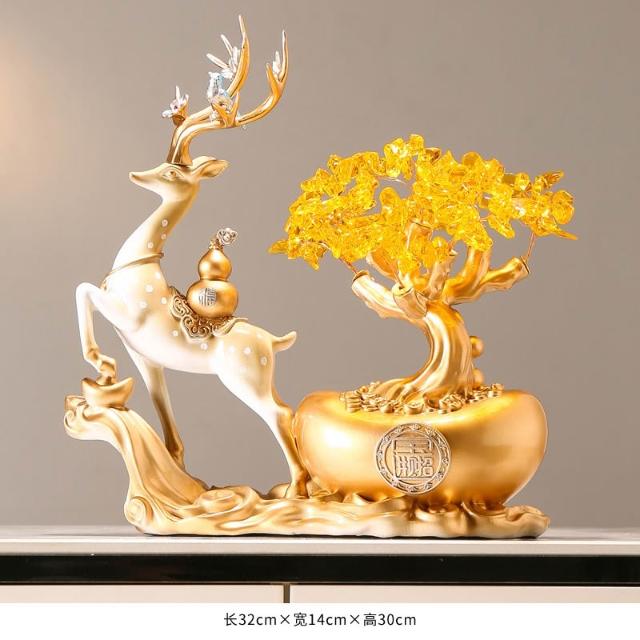 新中式招財鹿發財樹搖錢樹元寶擺件辦公室裝飾品開業喬遷禮物禮品