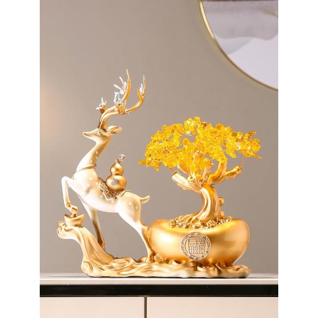 新中式招財鹿發財樹搖錢樹元寶擺件辦公室裝飾品開業喬遷禮物禮品