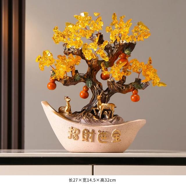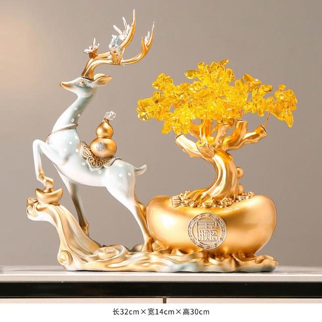 新中式招財鹿發財樹搖錢樹元寶擺件辦公室裝飾品開業喬遷禮物禮品