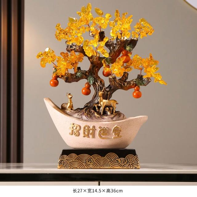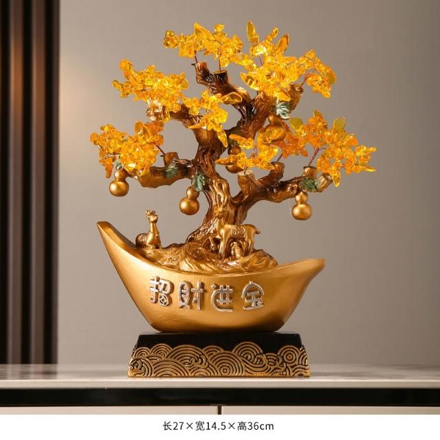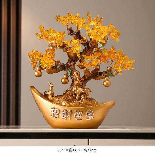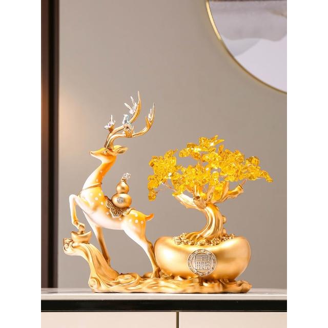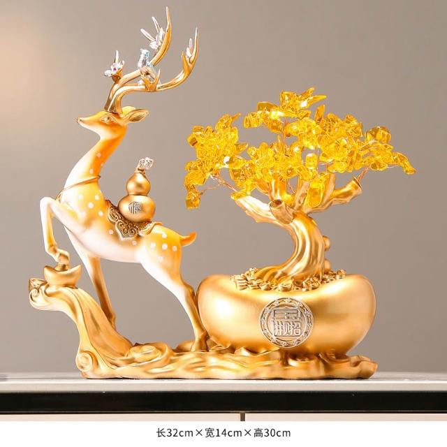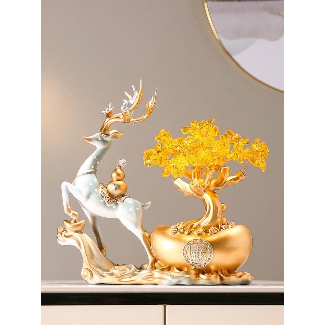 新中式招財鹿發財樹搖錢樹元寶擺件辦公室裝飾品開業喬遷禮物禮品