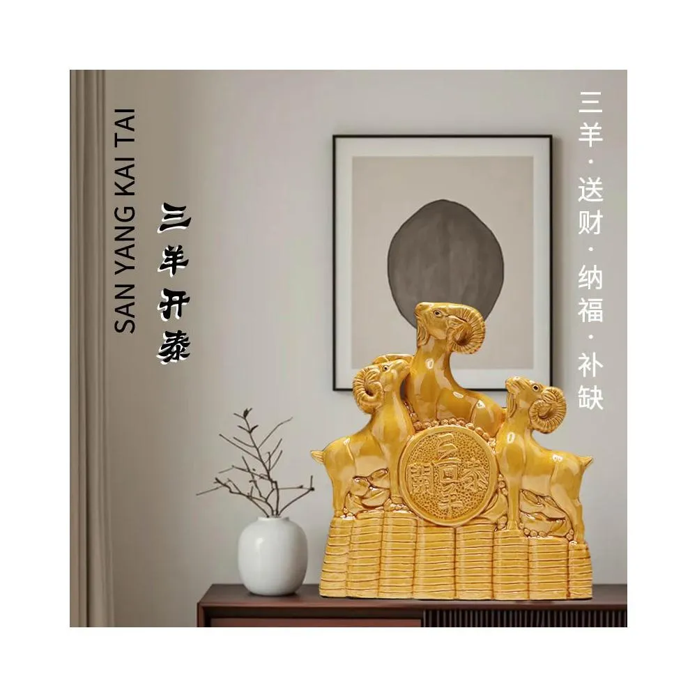唐三彩陶瓷羊西南擺件三羊開泰家居擺件飾品中式生肖羊陶瓷工藝品