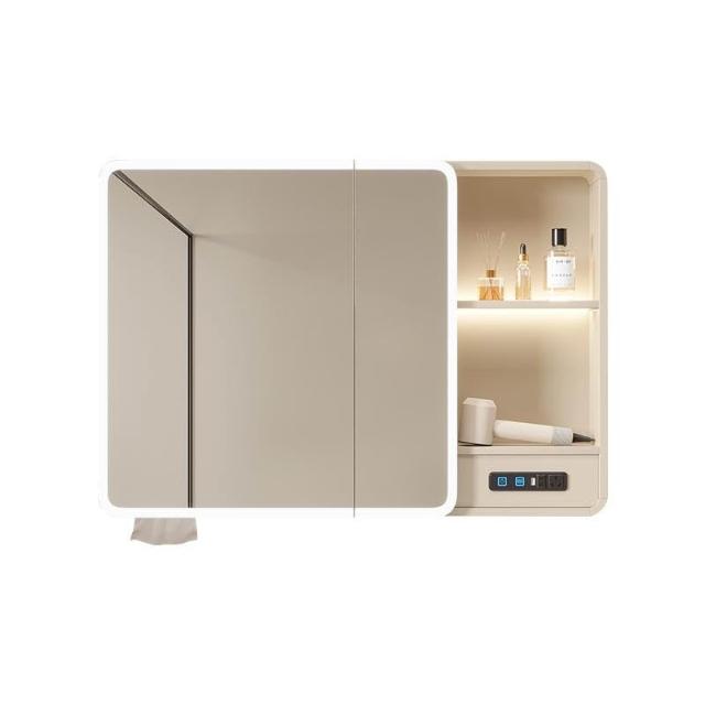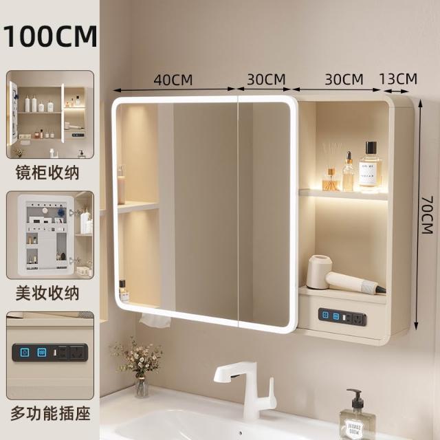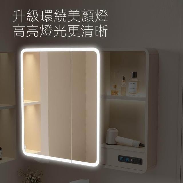 新款圓弧形太空鋁智能浴室鏡櫃帶插座鏡掛牆式收納架