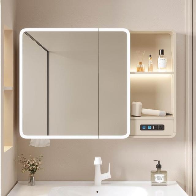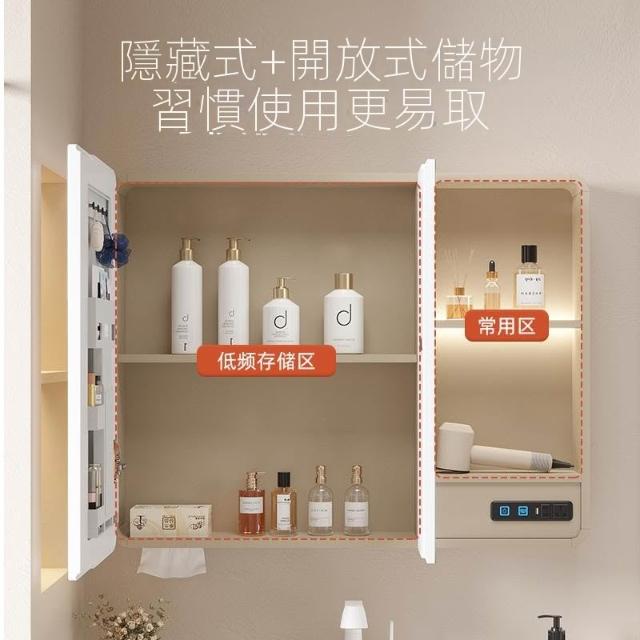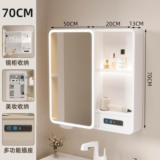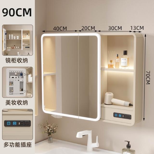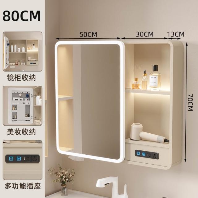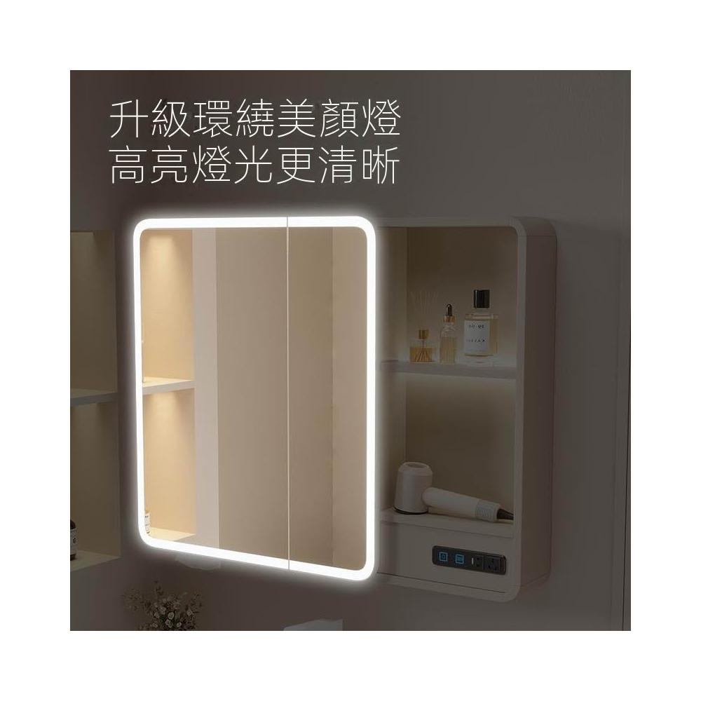 新款圓弧形太空鋁智能浴室鏡櫃帶插座鏡掛牆式收納架