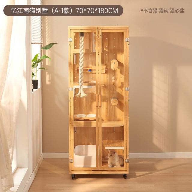 DIY貓別墅實木貓籠子家用不占地貓房子超大自由空間貓屋全景貓櫃