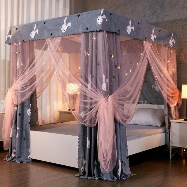 床幔公主防塵家用臥室出租房遮光床簾蚊帳一體式全封閉少女掛布簾