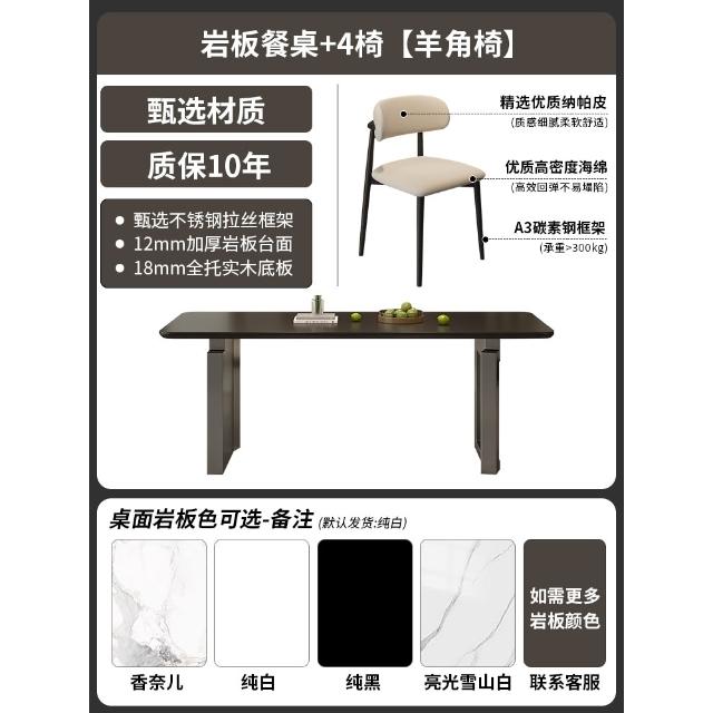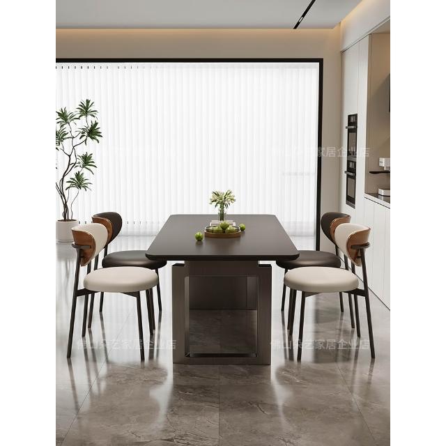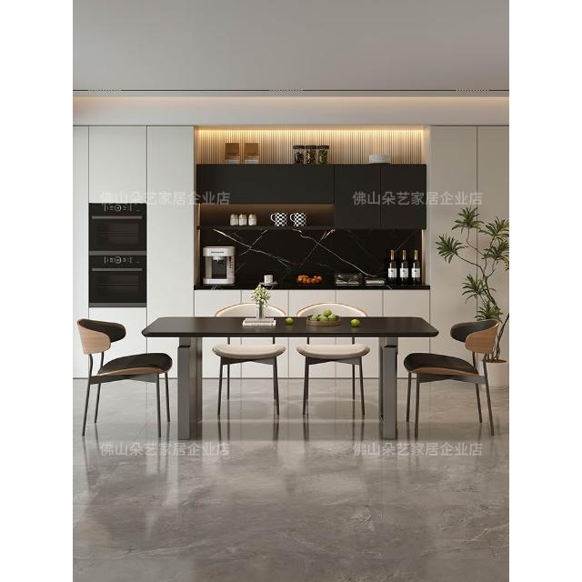 意式極簡岩板餐桌椅組合小戶型長方形現代簡約家用黑色吃飯桌子
