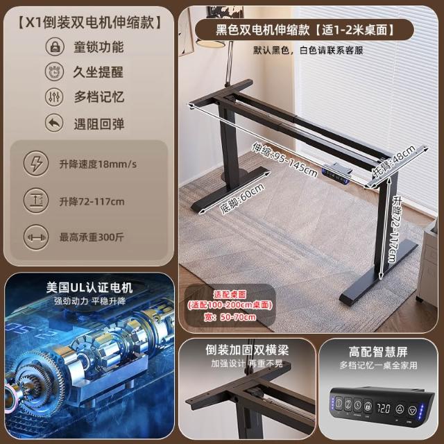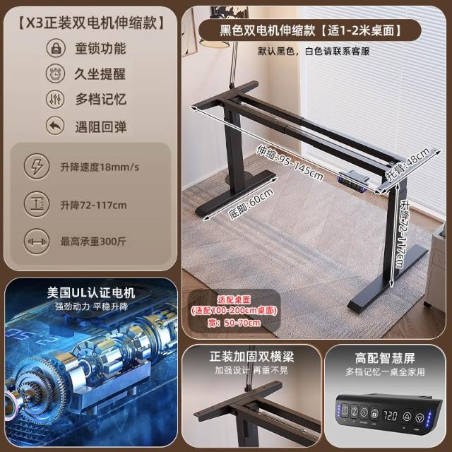 電動升降桌腿雙電機收納橫樑辦公桌電腦桌支架腳架智能升降桌架子