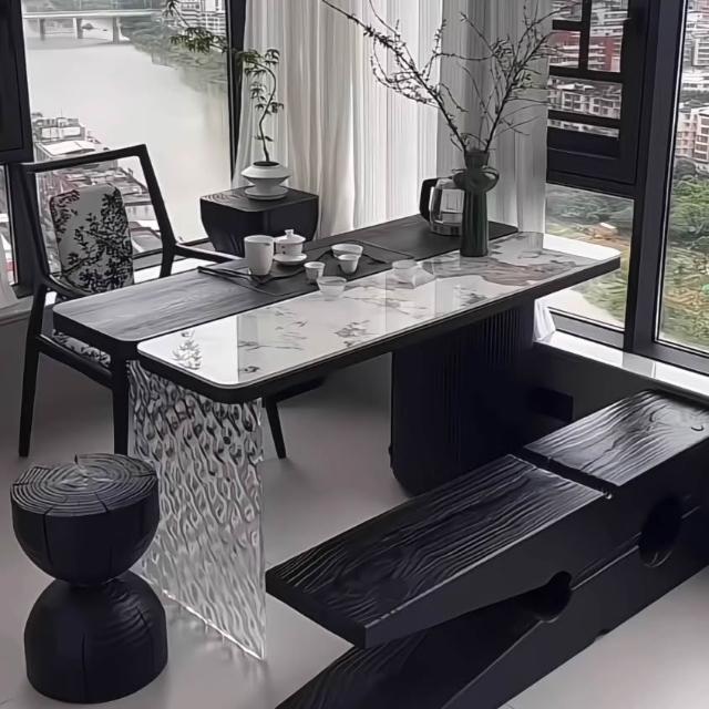 侘寂風實木茶桌椅組合現代簡約家用客廳陽臺泡茶臺禪意茶室茶藝桌