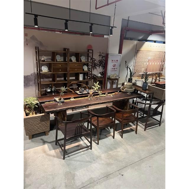 新中式迴圈流水養魚茶桌創意茶臺景觀一體曲水流觴實木茶桌椅組合