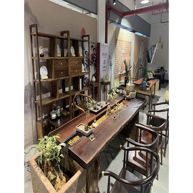 新中式迴圈流水養魚茶桌創意茶臺景觀一體曲水流觴實木茶桌椅組合