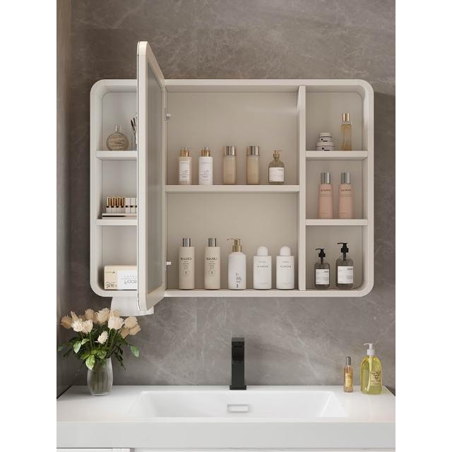 太空鋁圓角浴室鏡櫃智能燈光除霧鏡子掛牆式收納儲物櫃衛生間鏡箱