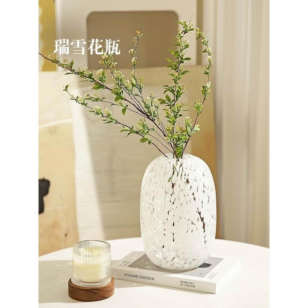 花瓶擺件客廳插花白色玻璃法式高級感廳蝴蝶蘭仿真花花器