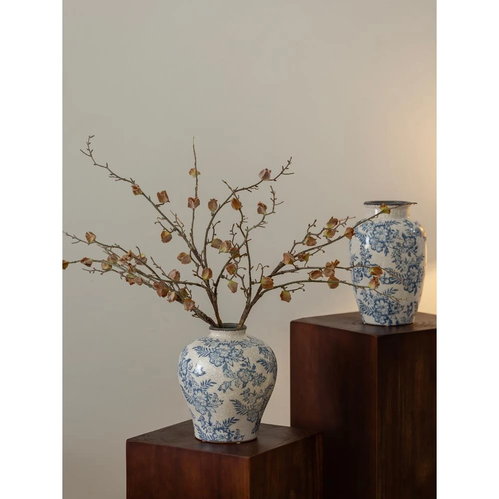 青花瓷花瓶擺件客廳插花水培新中式輕奢高級感中古陶瓷復古