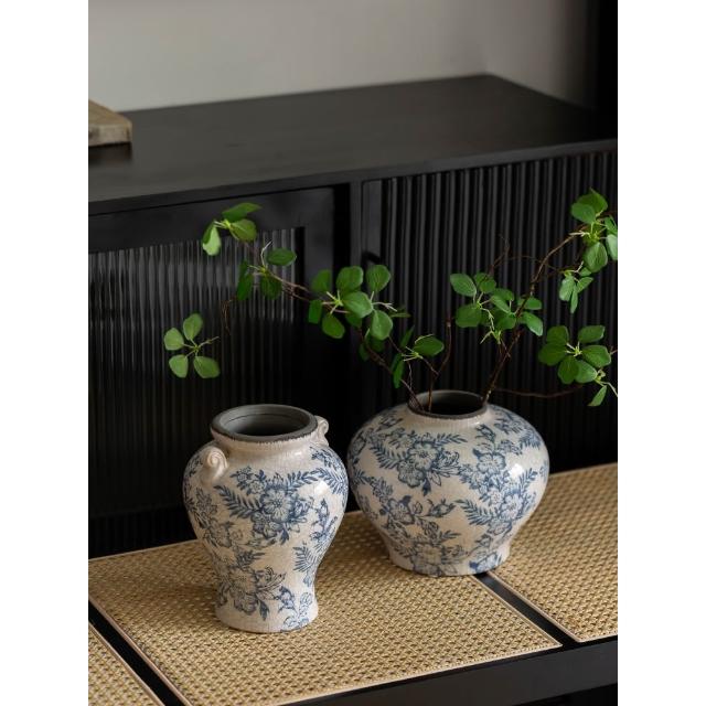 青花瓷花瓶擺件客廳插花水培新中式輕奢高級感中古陶瓷復古
