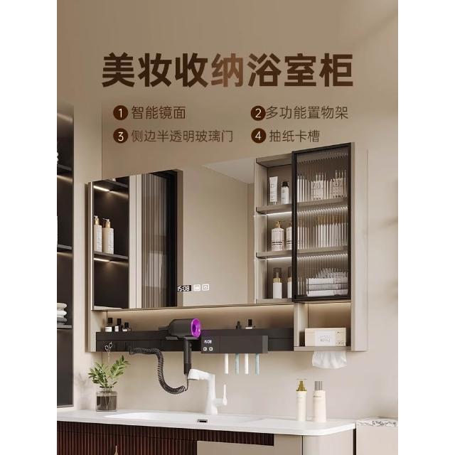 智能浴室鏡櫃多功能帶燈防霧單獨衛生間鏡子電吹風機架收納一體櫃