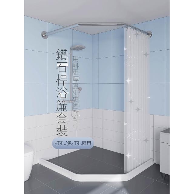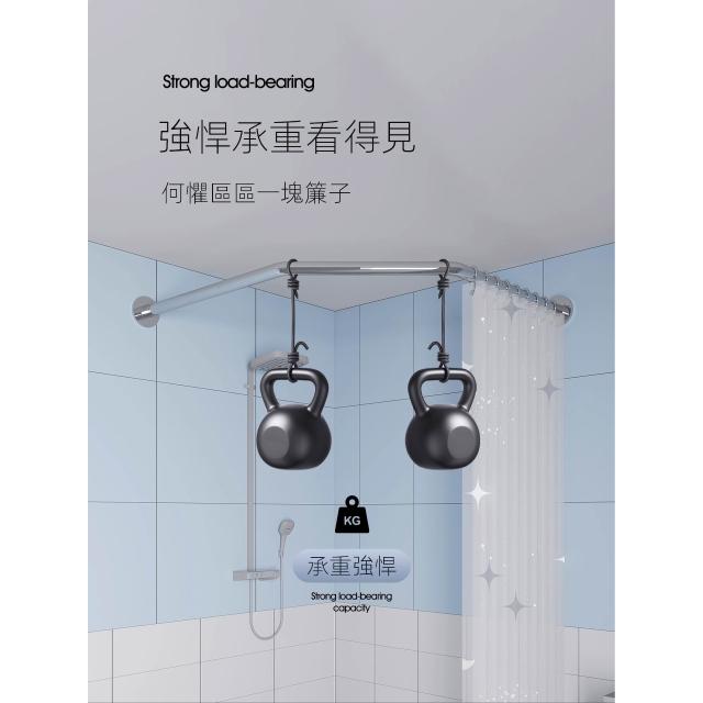 新款弧形浴簾杆L型菱形伸縮杆免打孔衛生間淋浴簾掛簾杆軌道