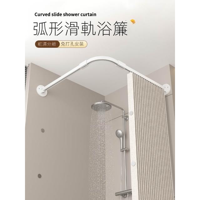 弧形軌道浴簾杆免打孔衛生間隔斷簾折疊浴簾防水u型L浴室幹濕分離