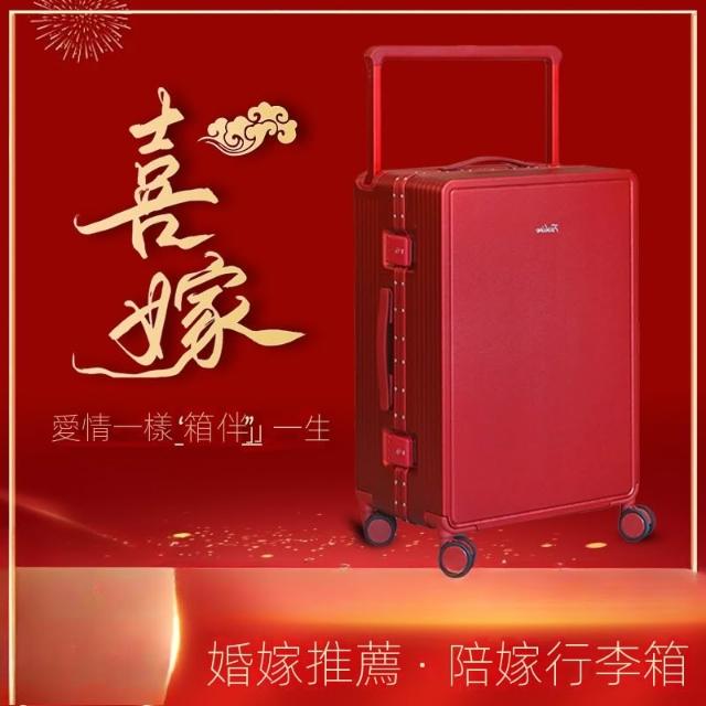結婚行李箱寬拉杆新娘陪嫁箱紅色密碼旅行箱萬向輪靜音鋁框密碼箱