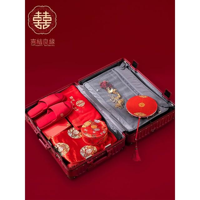 新娘結婚行李箱紅色陪嫁拉杆皮箱婚禮嫁妝密碼箱女方婚嫁箱子一對