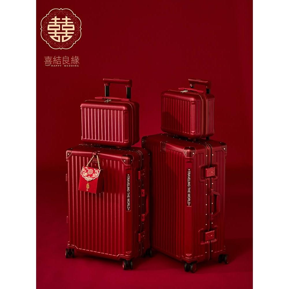 新娘結婚行李箱紅色陪嫁拉杆皮箱婚禮嫁妝密碼箱女方婚嫁箱子一對
