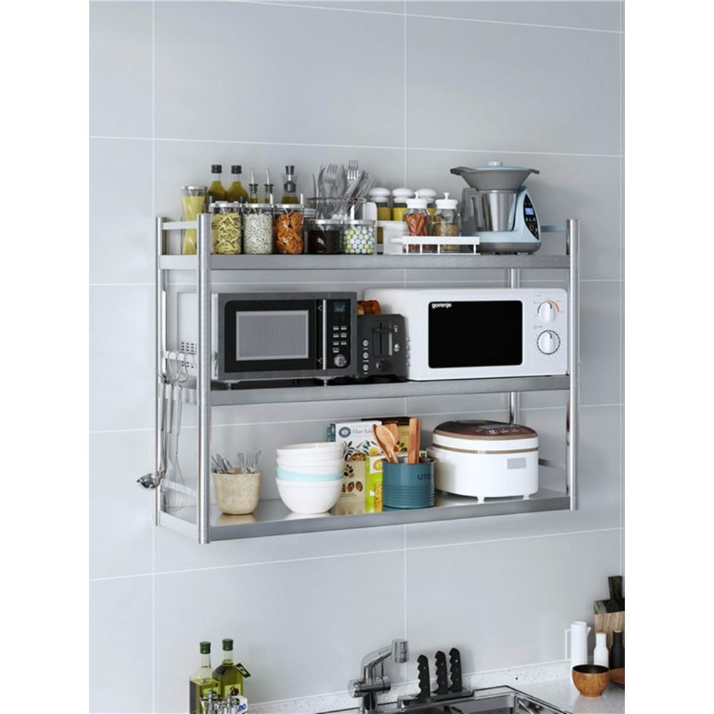 帶護欄雙層不銹鋼廚房置物架微波爐烤箱調料上牆架兩層壁掛牆上架