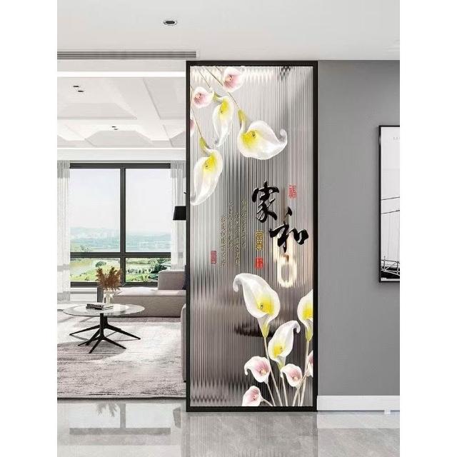 長虹藝術玻璃屏風隔斷現代簡約客廳衛生間玄關入戶裝飾遮擋不銹鋼