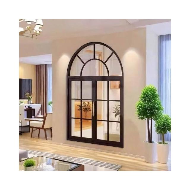 法式窗戶復古定制鐵藝鋁合金門窗上海圓弧老鋼窗拱形窗格子窗落地